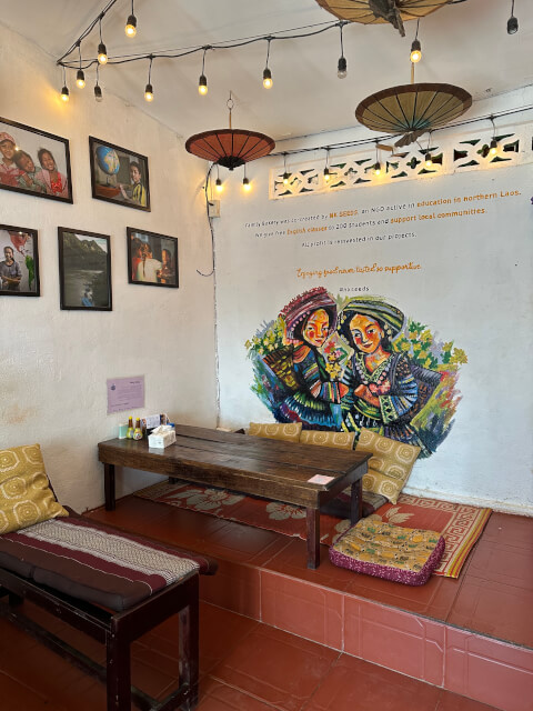 Welcome to the Family Bakery & Restaurant family! This restaurant was created in collaboration between NK SEEDS and Pinkeo’s family, who became Melissa’s family of heart. In 2018, when Melissa arrived in Nong Khiaw, she was alone, knowing no one and not speaking the local language. Touched by her dedication to her people, Pinkeo decided to support her by welcoming her into her home, surrounded by her sisters and daughters. At that time, Pinkeo owned a restaurant called Family Bakery in Nong Khiaw. Unfortunately, due to the Covid-19 pandemic and the difficult economic situation, Pinkeo’s family had to close the establishment. In 2022, Melissa returned to Laos with the aim of relaunching and expanding NK SEEDS’ activities. Settling in Luang Prabang, Pinkeo’s hometown, Melissa seized the opportunity to create a restaurant in partnership with her host family. And so in October 2022, Family Bakery & Restaurant opened its doors!